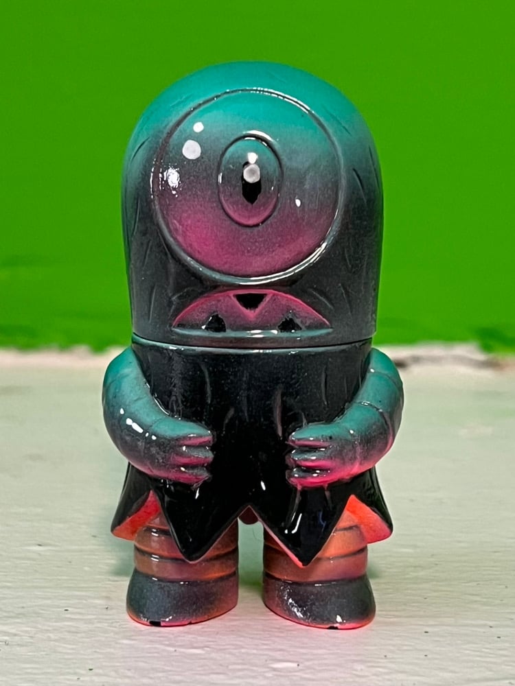 Helper mini vinyl figure by Tim Biskup/Gargamel. Custom paint job by HipHop Robot Tattoo. Stands 3 inches tall.